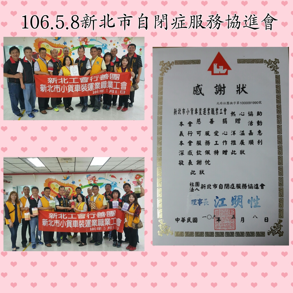 相簿 - 106.5.8本會持續關懷新北市自閉症服務協進會自閉症孩子.今年除捐款外還購買自閉症孩子親手做的愛心