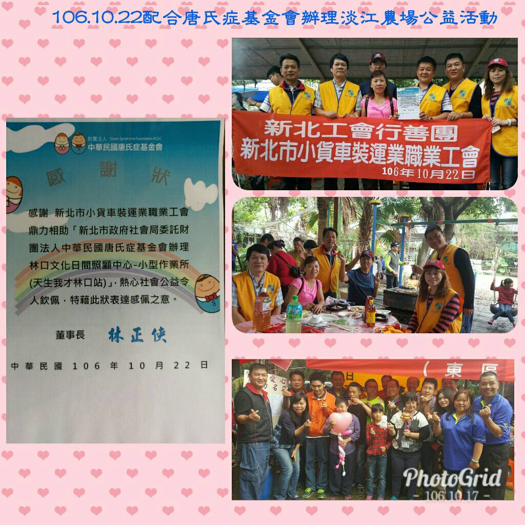 106年10月22日配合中華民國唐氏症基金會於淡江農場辦理烤肉公益活動與唐氏症兒童一同調理食材,分享一場週末假期的美食饗宴。