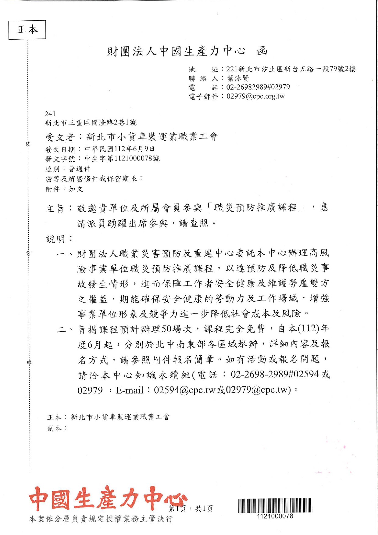 中國生產力中心函示辦理【職災預防推廣課程】.以達預防及降低職災事故發生.課程完全免費.供參考.請自行選擇場次報名.謝謝~