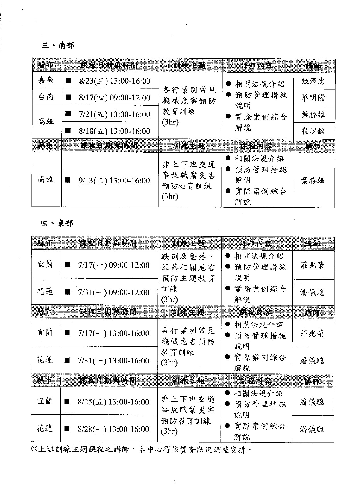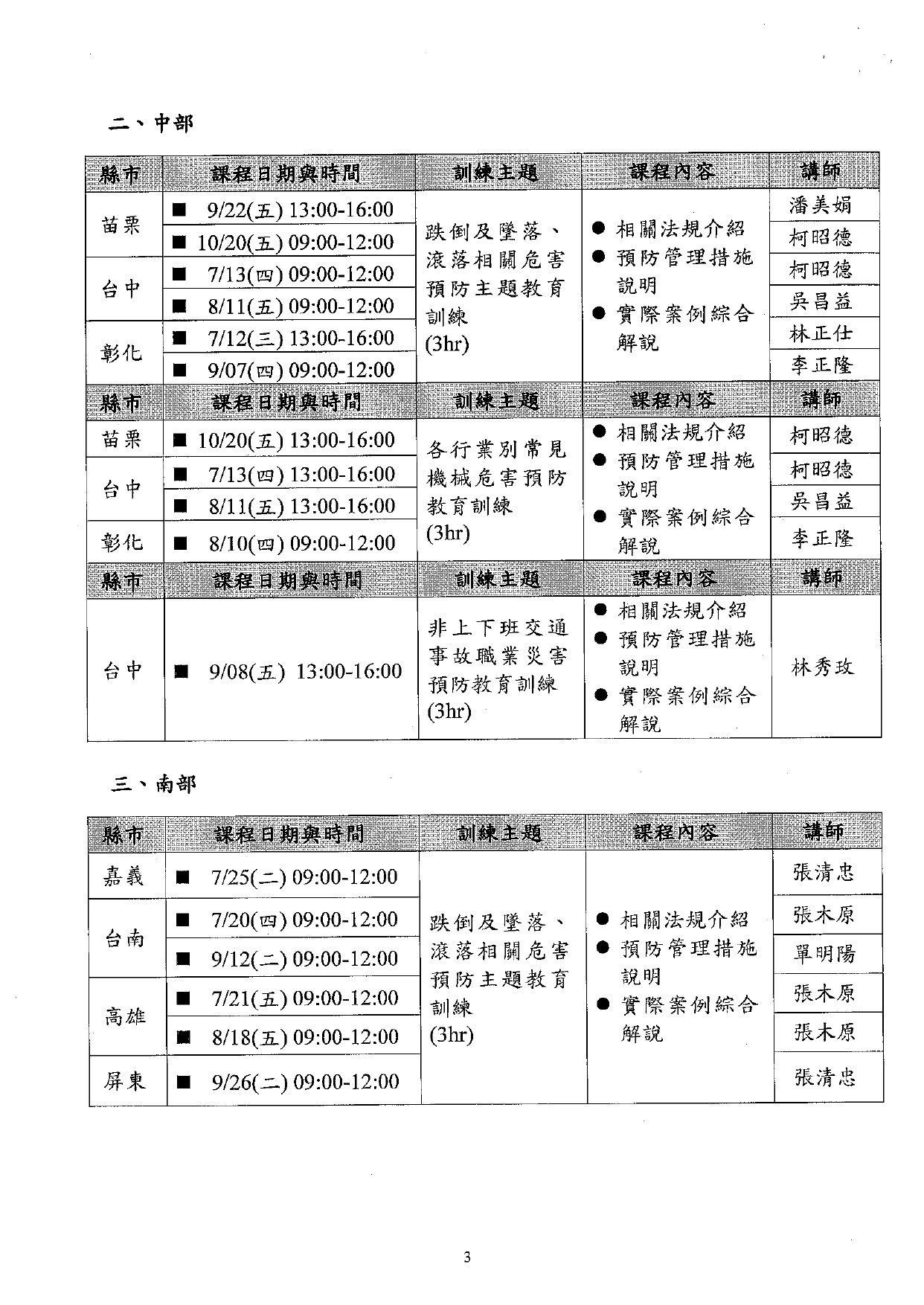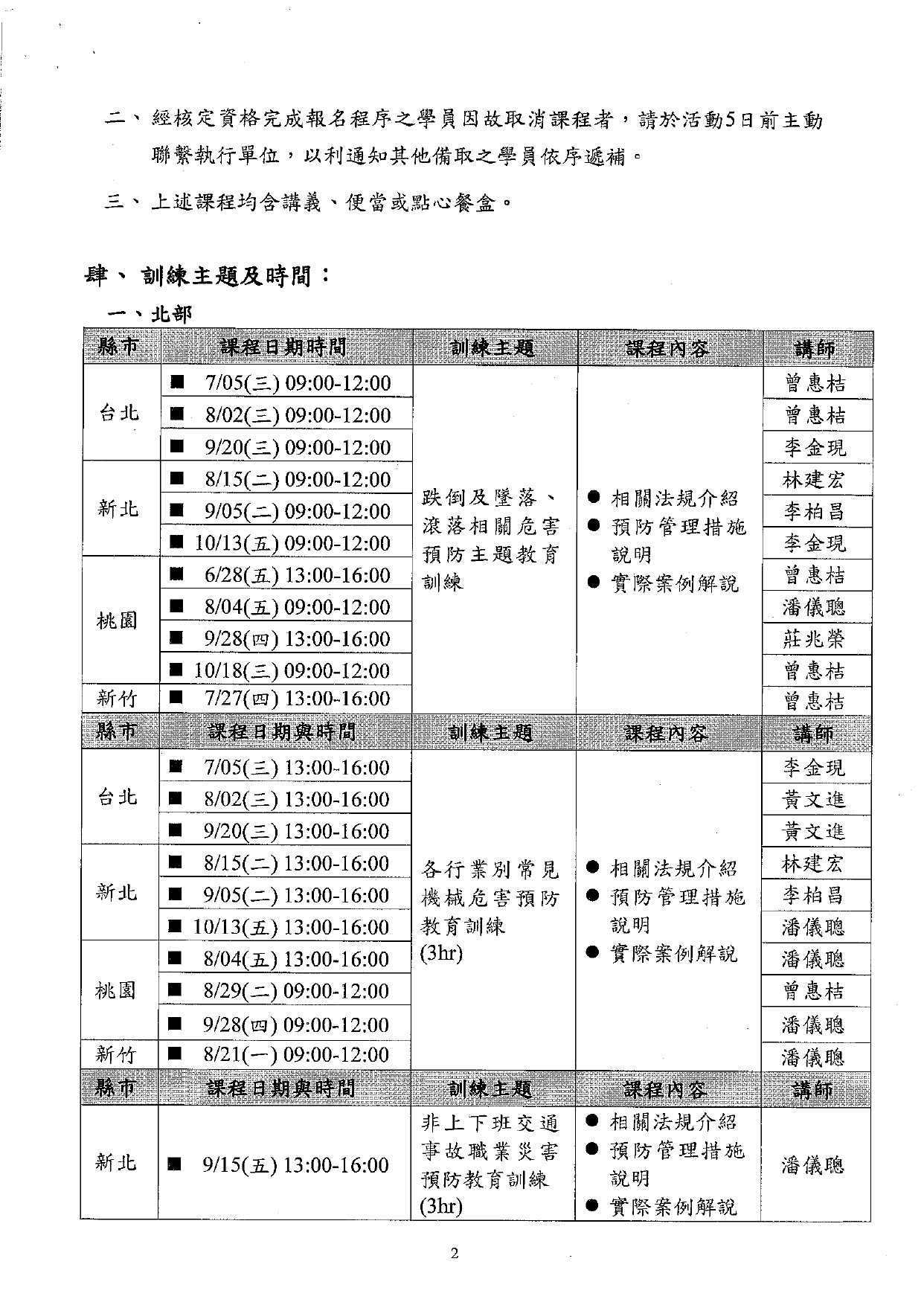 勞工教育講習課程表