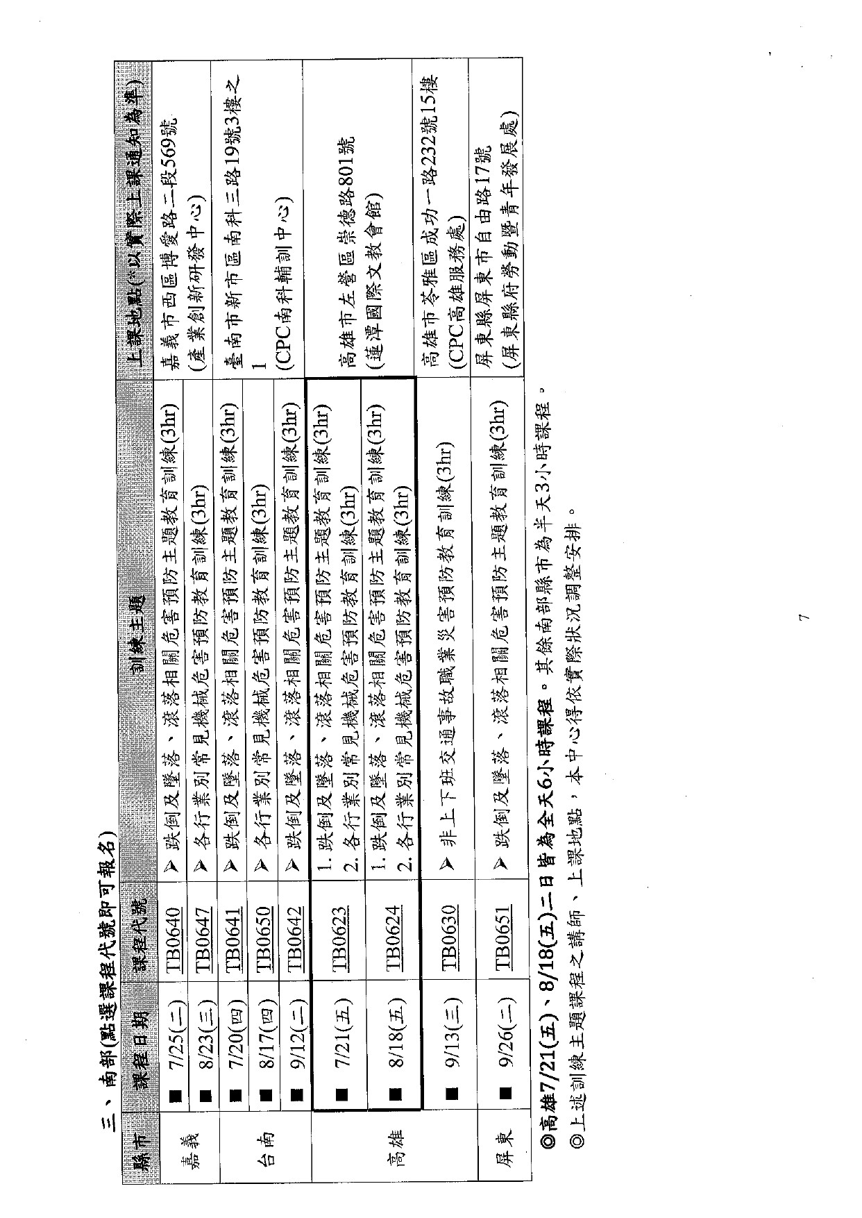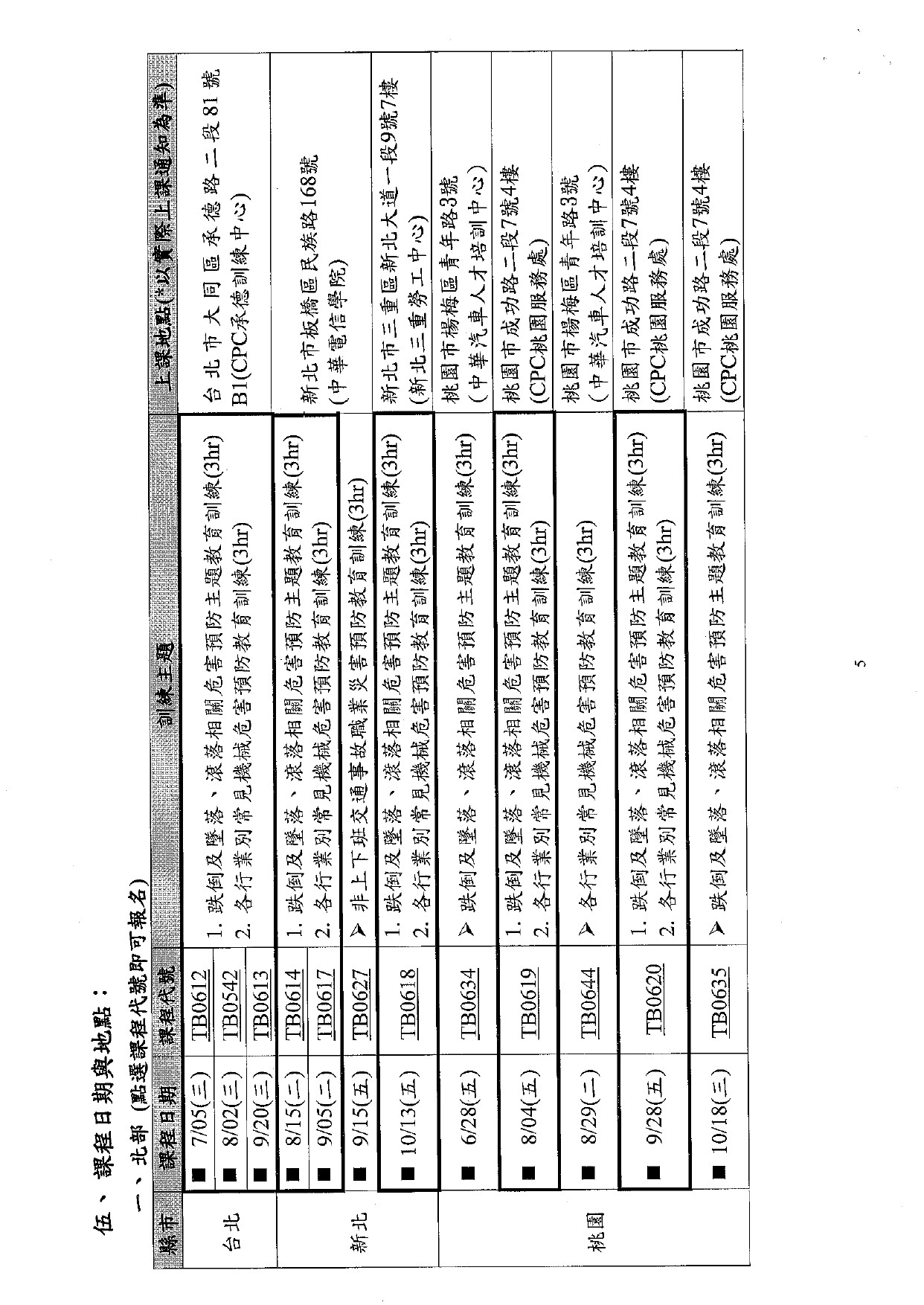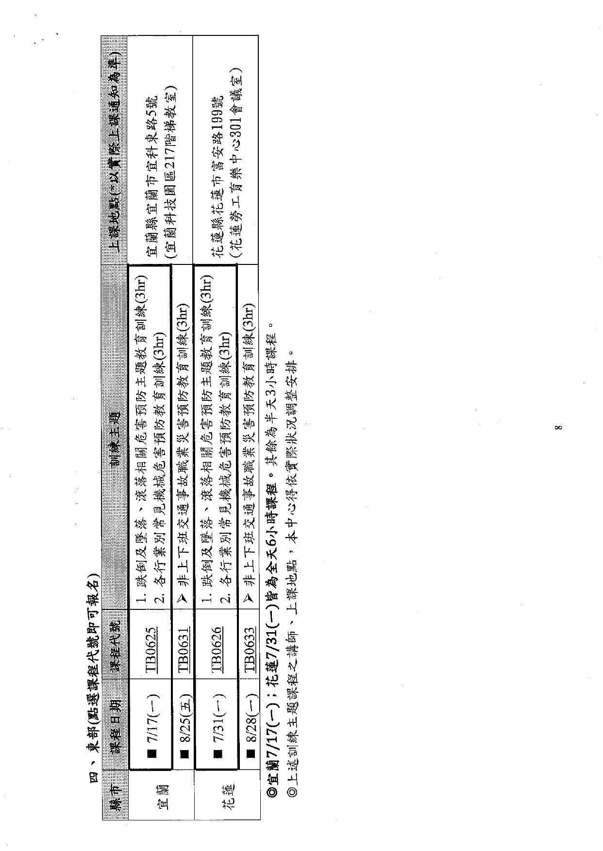 勞工教育講習課程表