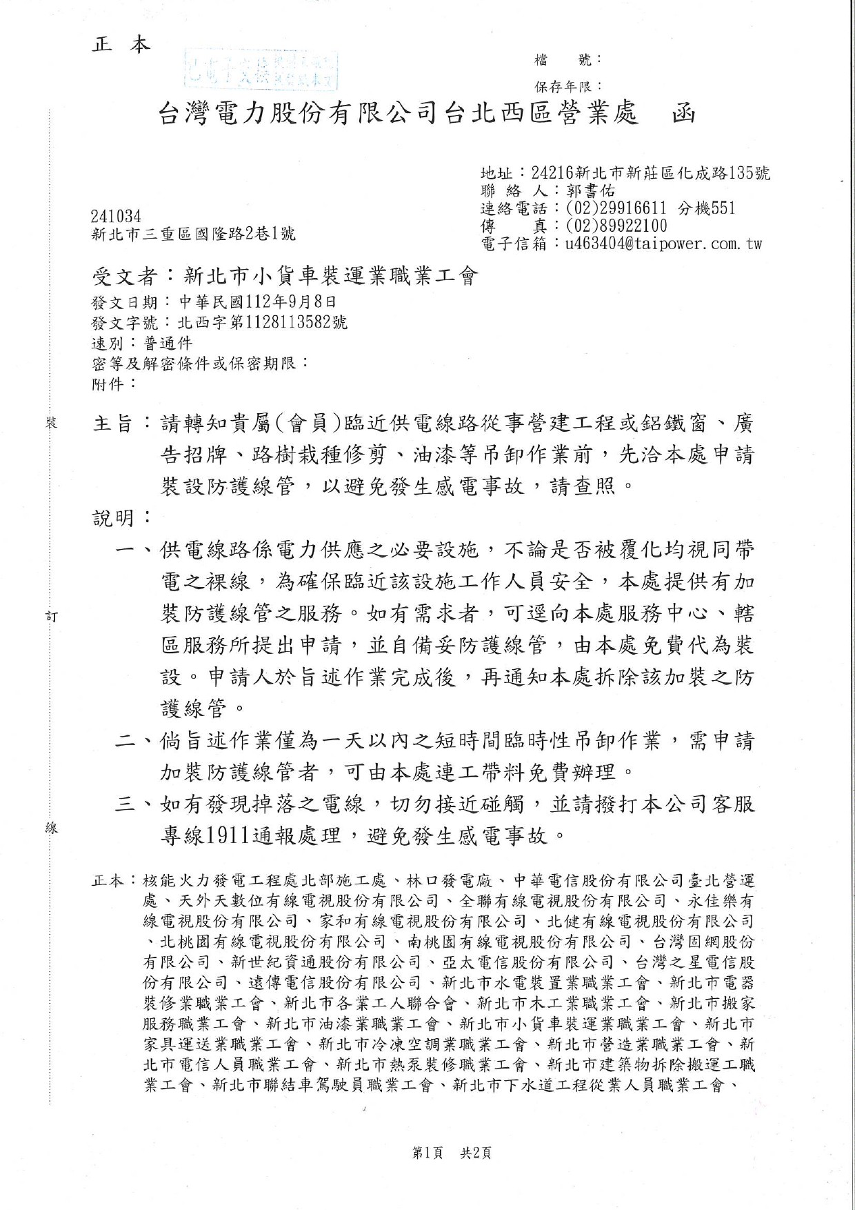 從事吊卸作業前.請先申請裝設防護線管
