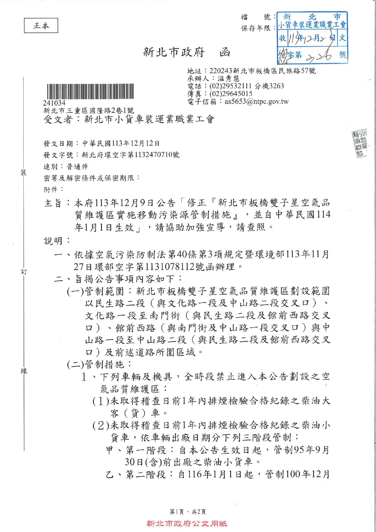 修正~新北市板橋雙子星空氣品質維護區實施移動汙染源管制措施~