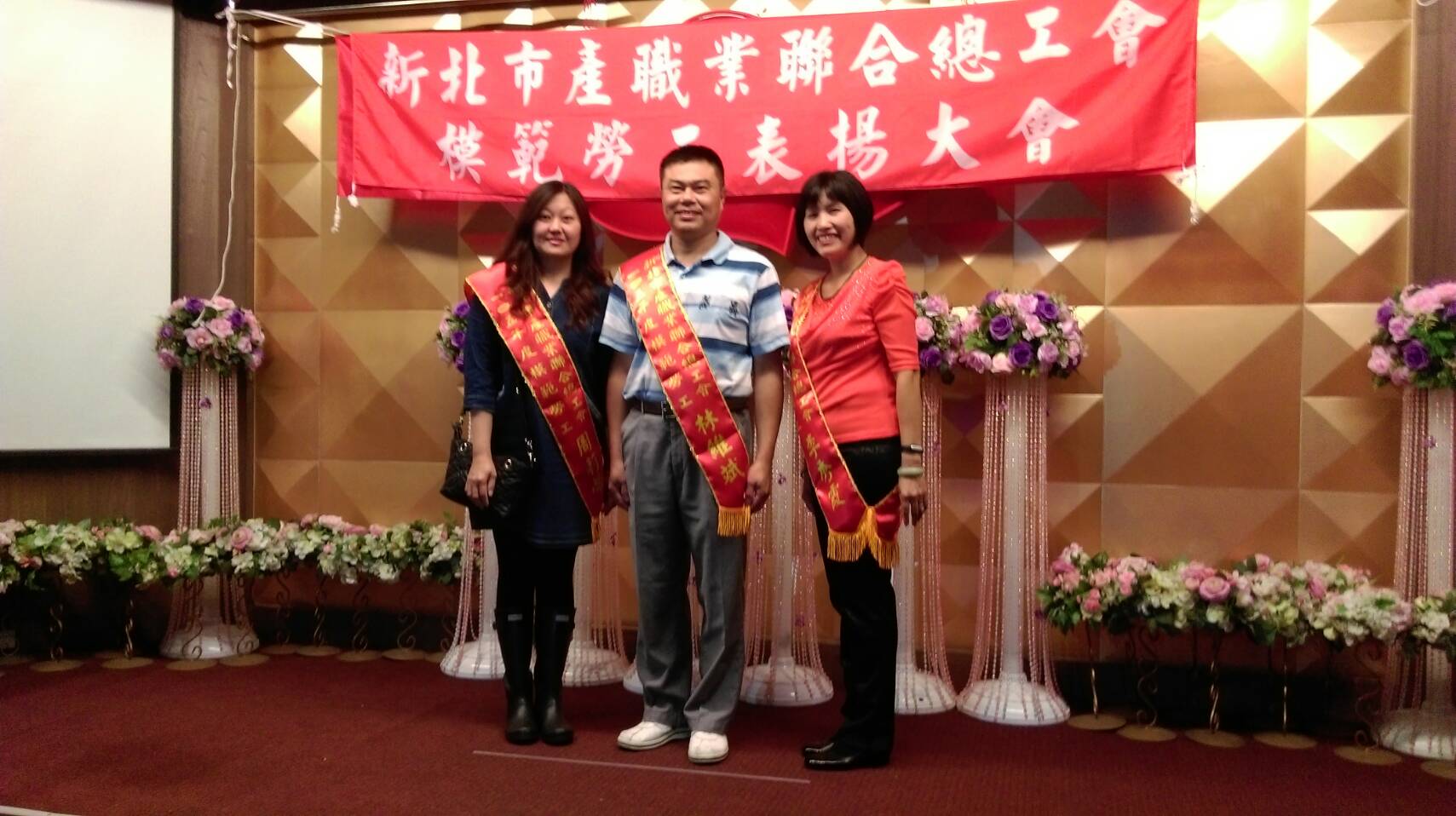 本會選派林維斌。李秀霞。周莉蒂等三名接受新北市產職業聯合總工會105年模範勞工表揚